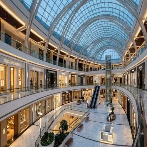 مع توفير مساحات كافية للحركة والمناطق المفتوحة التي تعزز من تجربة المستخدم داخل المول.