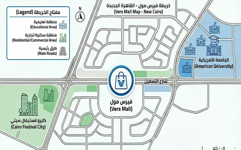 يقع فيرس مول التجمع الخامس vers mall new cairo في واحدة من أكثر المناطق حيوية ونموا داخل القاهرة الجديدة، ما يمنحه موقعا استراتيجيا مميزا.